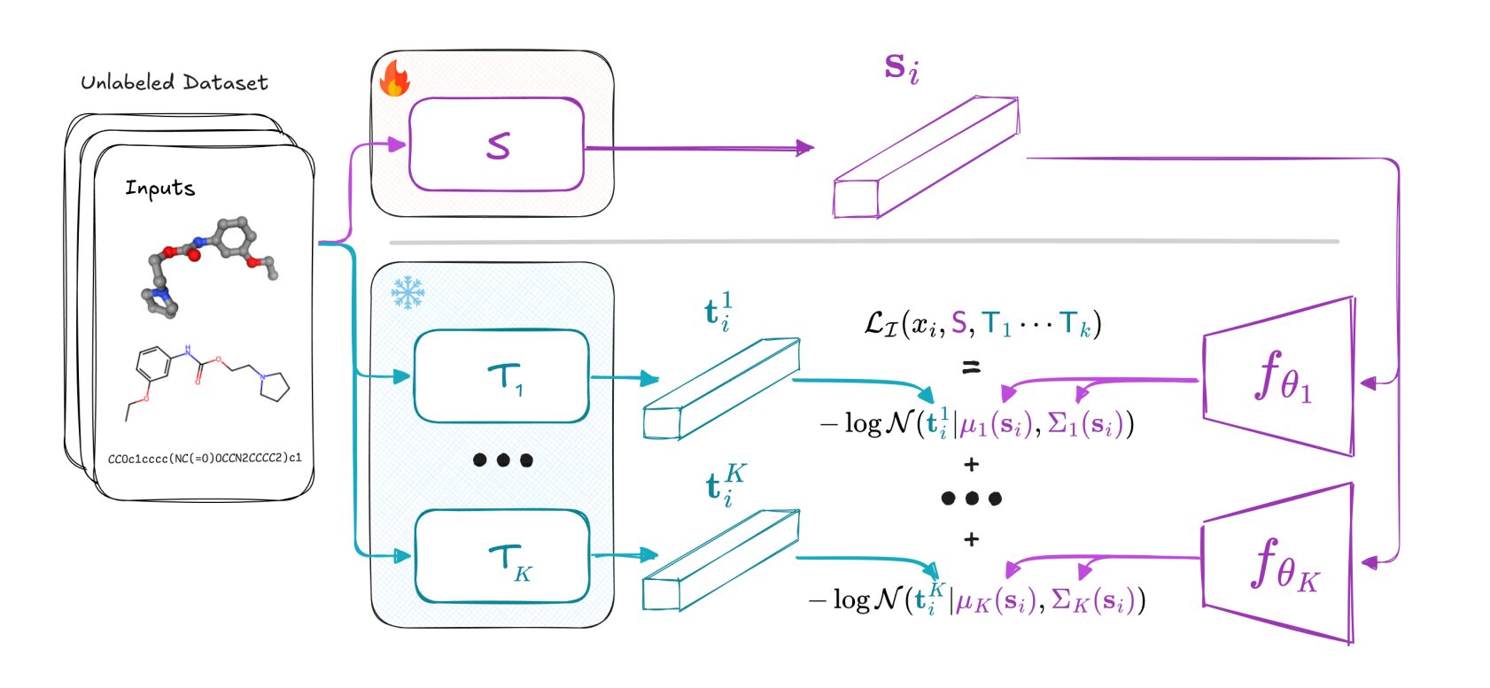 Concretely, they implement this loss with a differentiable Gaussian mixture estimator of conditional entropy and train student embedders on unlabelled data from text, vision and molecular domains. After distillation, the student is frozen and simple feed-forward heads are trained for a variety of classification, regression, clustering and similarity benchmarks.